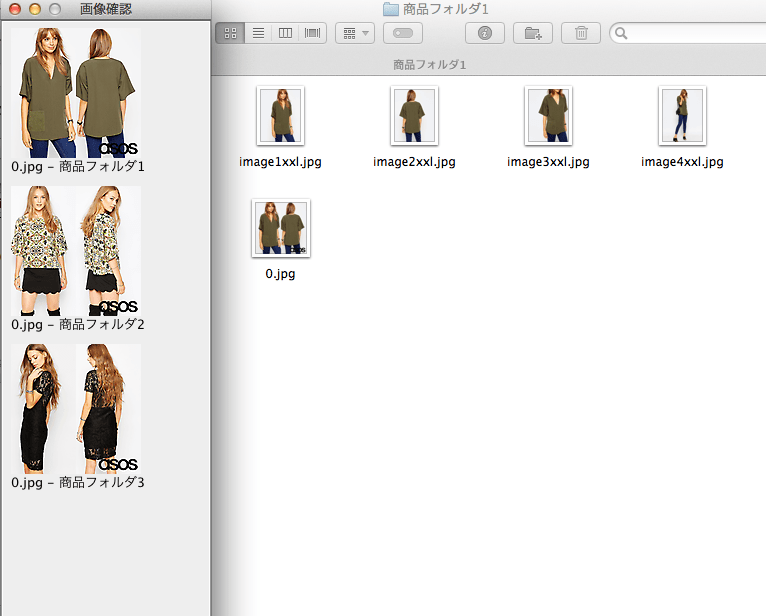 3.確認をクリックするとブランドフォルダ内の商品フォルダで加工された画像が一覧で表示され確認できます。