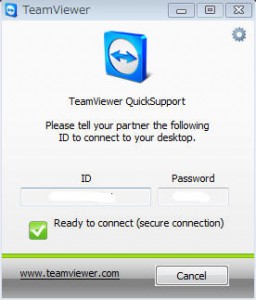 サポートまでにTeamViewerを閉じてしまった時は新しいパスワードをご連絡ください。